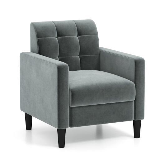 Mid Century Modern Velvet Accent Chair with Tufted Back-Grey – Color: Gray