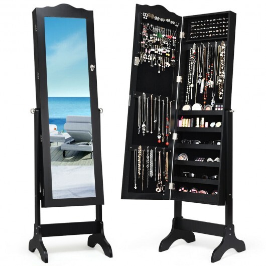 It is specially designed for all your valuables helps your jewelry in an organized manner and prevents them from getting tangled and keeps your jewelry safe and away from kids. Full size mirror is convenient for you to try your clothes or jewelry on and because of the 4 angle tilting design you can choose your favorite angle for a better view. In addition its chic and stylish design fits with your bedroom decor. With it your life will be convenient and self-consistent.