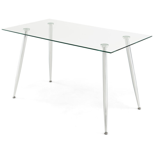 Modern Glass Rectangular Dining Table with Metal Legs-Silver – Color: Silver