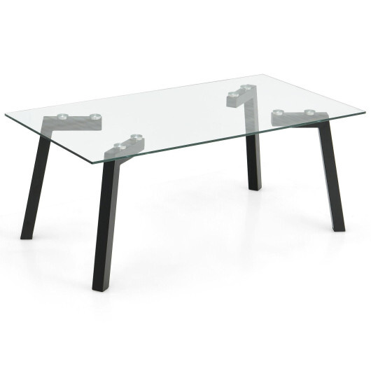 Modern Tempered Glass Coffee Table with Metal Frame for Living Room – Color: Transparent