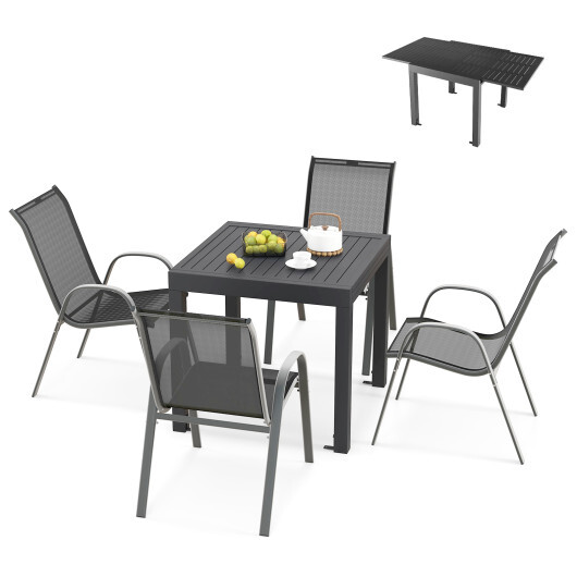 Outdoor Dining Table Set with Extendable Aluminum Table and 4 Stackable Chairs