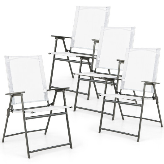 Set of 4 Patio Folding Chair Set with Rustproof Metal Frame-White – Color: White