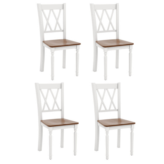 Set of 4 Wooden Farmhouse Kitchen Chairs with Rubber Wood Seat – Color: Walnut & White