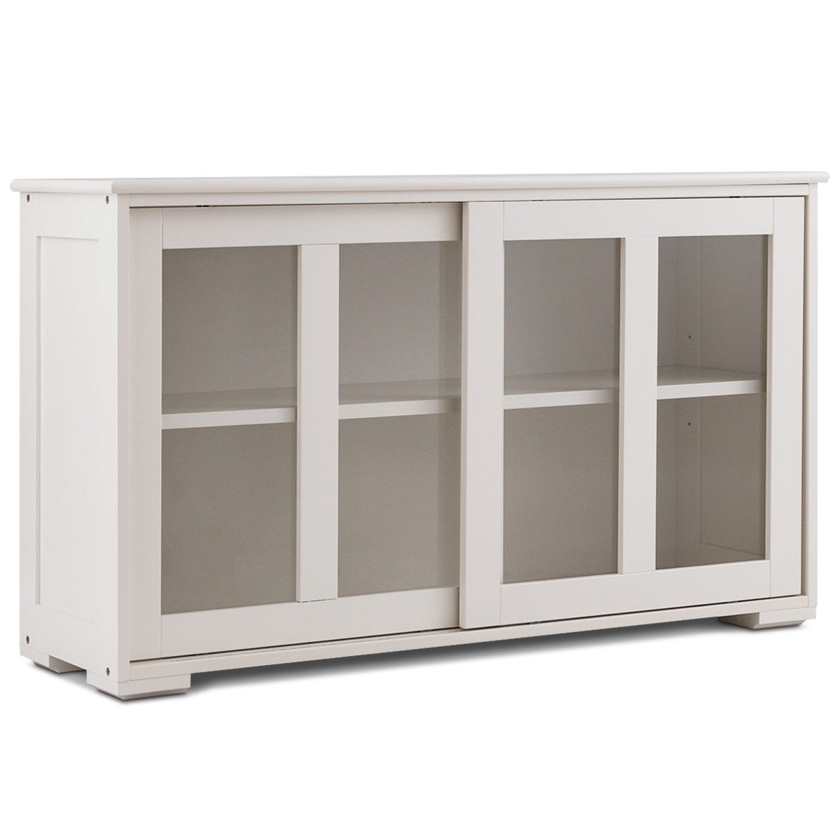 Sideboard Buffet Cupboard Storage Cabinet with Sliding Door-Antique White – Color: White