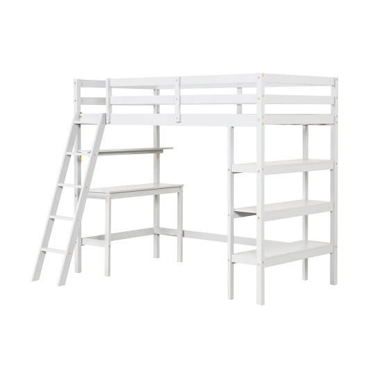 Twin Size Loft Bed with Desk and Bookshelves for Kids and Teens-White – Color: White