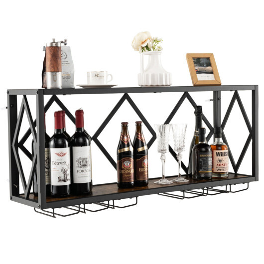 Specifications: Color Rustic Brown Black Material Metal Engineered Wood Overall Dimension with Stemware Holders 39.5″ x 10″ x 18″ Overall Dimension without Stemware Holders 39.5″ x 10″ x 16″ Height of the Wine Bottle Rack 14″ Suitable Wine Bottle Diameter more than 2.76″ Suitable Glass Size 1.3″-2″ x 3.1″-6″ Wine Bottle Capacity 39 Glass Capacity 12 Weight Capacity of Each Shelf 100 lbs Net Weight 21 lbs