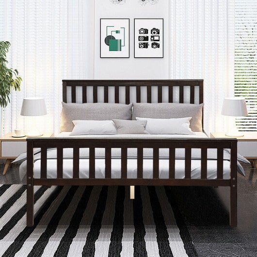 Specifications: Color: Espresso Frame: Pine Slats: Plywood Full size: Net weight: 48.4 lbs Weight capacity: 250lbs Product size : 80″ x 57″ x 33.5″ (L x W x H) (Full size) Suitable mattress size : 54″ x 75″ (Full size not included) Queen size: Slats:Plywood Net weight: 51.7 lbs Weight capacity: 250 lbs Product size : 85″ x 64″ x 33.5″ (L x W x H) (Queen size) Suitable mattress size : 60″ x 80″ (Queen size not included) Package included: 1 x Bed frame 1 x Instruction