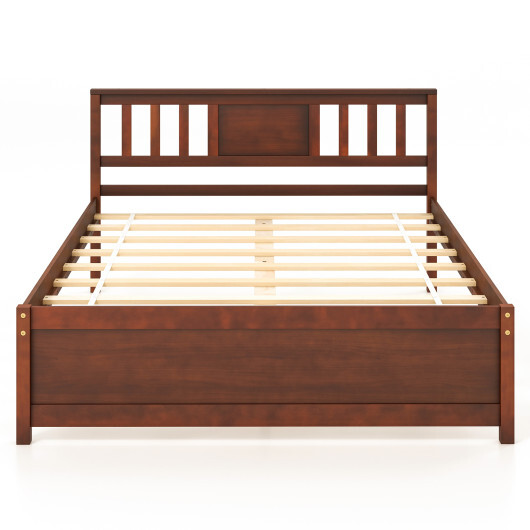 Specifications: Specification: Color: Walnut Material: Pine Wood MDF Plywood Twin Overall Dimensions: 79.5″ x 42″ x 33.5″ (L x W x H) Bed Platform Dimensions: 76″ x 39″ (L x W) Space Between Bed and Ground: 12″ Footboard Height: 16″ Weight Capacity: 440 lbs Net Weight: 37.5 lbs Full Overall Dimensions: 79.5″ x 57″ x 33.5″ (L x W x H) Bed Platform Dimensions: 76″ x 54.5″ (L x W) Space Between Bed and Ground: 12″ Footboard Height: 16″ Weight Capacity: 440 lbs Net Weight: 51 lbs Queen Overall Dimensions: 79.5″ x 57″ x 33.5″ (L x W x H) Bed Platform Dimensions: 76″ x 54.5″ (L x W) Space Between Bed and Ground: 12″ Footboard Height: 16″ Weight Capacity: 440 lbs Net Weight: 60.5 lbs